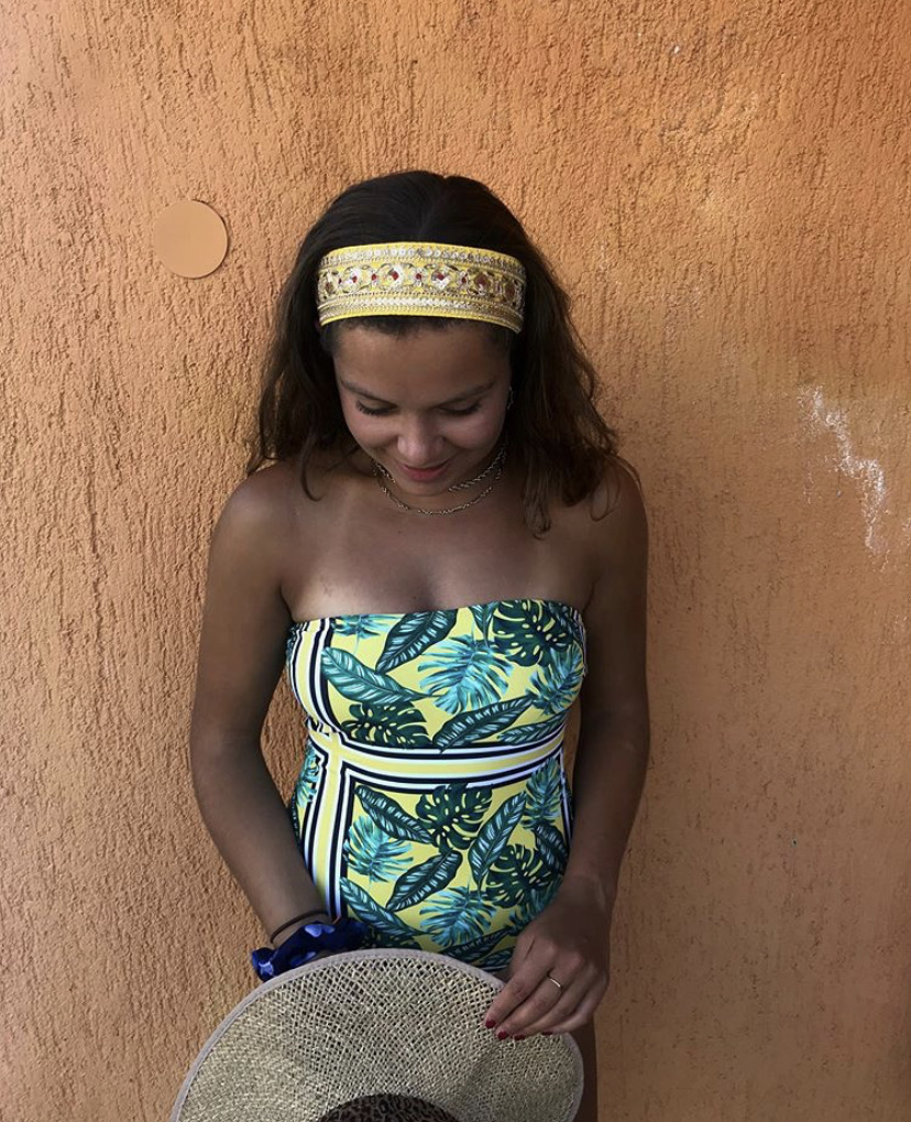 I would pair this beautiful bucket hat with either denim shorts or jeans, a white tee or a Bardot top and converse in white or black.