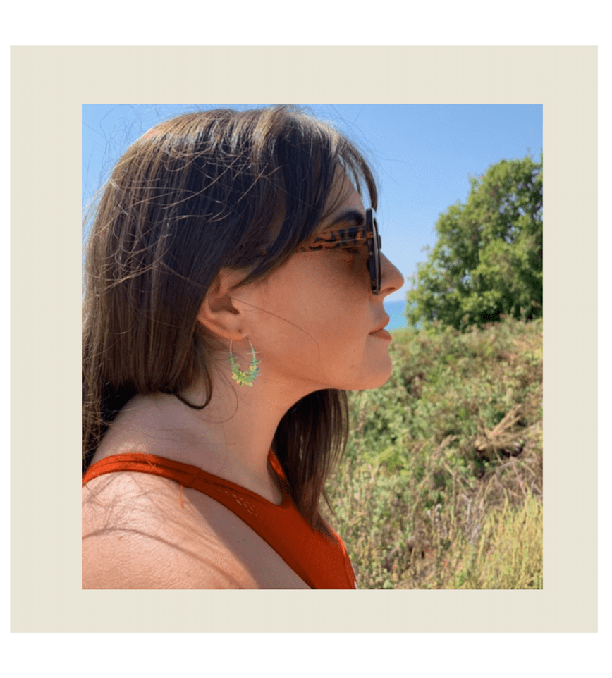 A pair of LOOPY earrings I kept going back to on holiday were the Green Flutter Hoops and I continue to do so for the Autumn season. I think that these earrings would look great with so many outfits as they add a glitter effect without being too overt. However, when light hits the earrings it lets off the most beautiful glow.