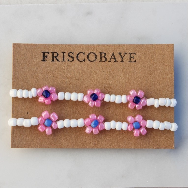 My first product was the colourful beaded name bracelets which I began selling them to friends and family via Instagram and Facebook. It wasn’t until Lockdown in summer when I had a lot more spare time to grow Friscobaye which was when I launched my website.